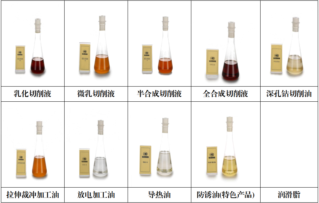 加工(gōng)用(yòng)油:乳化切削液、微乳切削液、半合成切削液、全合成切削液、磨削液、深孔鑽切削液、拉伸裁沖加工(gōng)有(yǒu)、切削油、放(fàng)電加工(gōng)油、導熱(rè)油、防鏽油、潤滑脂。